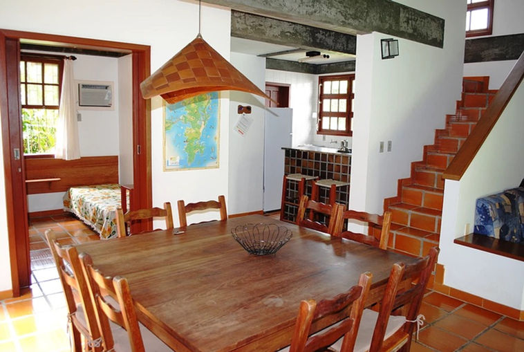 Localizado en Cachoeira do Bom Jesus, a 150 mts de la playa. Complejo de 6 cabañas para 8 personas cada uma de 3 dormitórios, 2 baños, salas, com piscinas, lugar de entretenimento, cancha de tênis, TV a cable, internet, servicio de mucama cada dia, seguro, tranquilo, familiar, exelente atención.